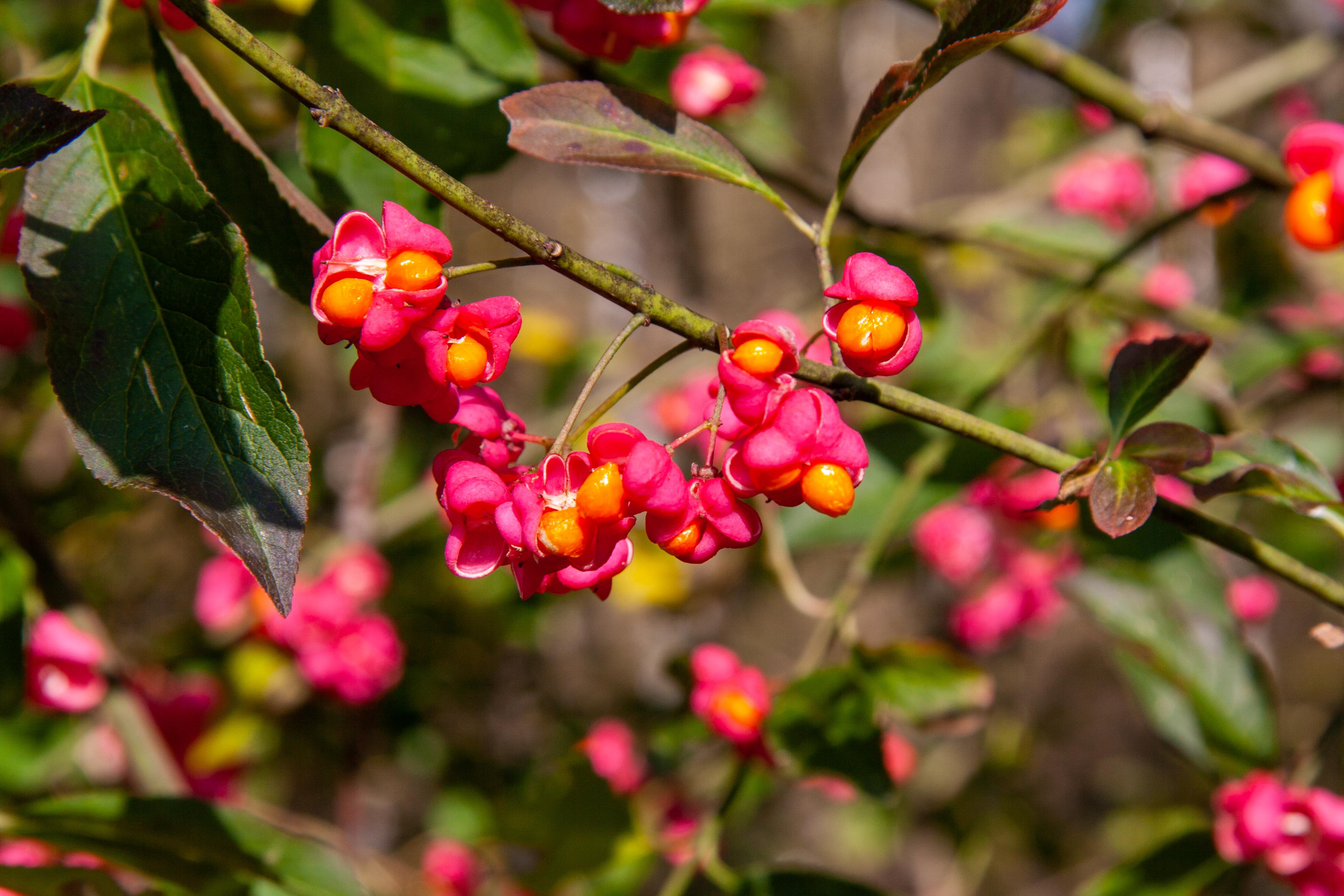 Knallpinke Kapseln mit orangenen Beeren in der Mitte – so zeigen sich die Früchte des Pfaffenhütchens und gerade Kinder sind fasziniert davon. Blätter, Rinde und Samen enthalten das Alkaloid Evonin. Erst nach circa 15 Stunden kommt es zu den ersten Vergiftungssymptomen wie Erbrechen, Durchfall und Magenkrämpfen. Nach der Aufnahme von hohen Dosen drohen Herzrhythmusstörungen sowie Leber- und Nierenschäden.