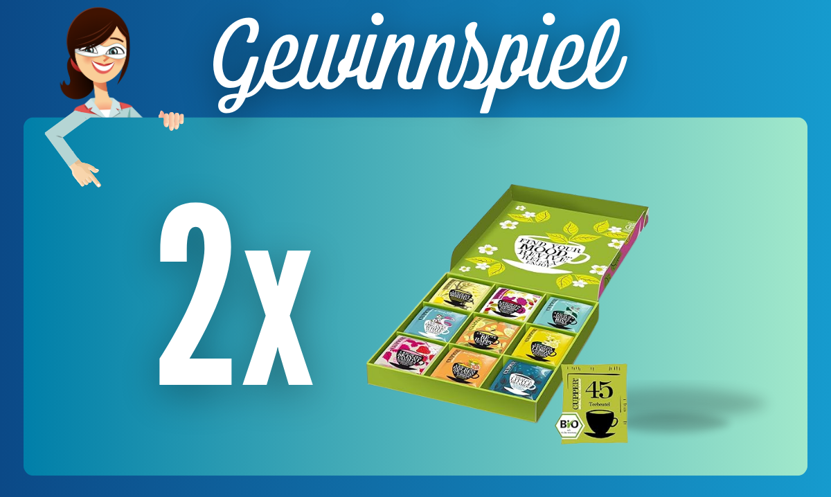 Wir verlosen zwei Bio Tee-Sets von Cupper mit neun verschiedenen Sorten je fünfmal. Wenn du Teeliebhaber:in bist, ist dieses Set genau das Richtige für dich! In Kombination mit einem guten Buch auf dem Sofa, als ruhiges Ritual am Morgen oder zum gemeinsamen Trinken, wenn Freunde dich besuchen, ist Tee immer eine gute Idee.